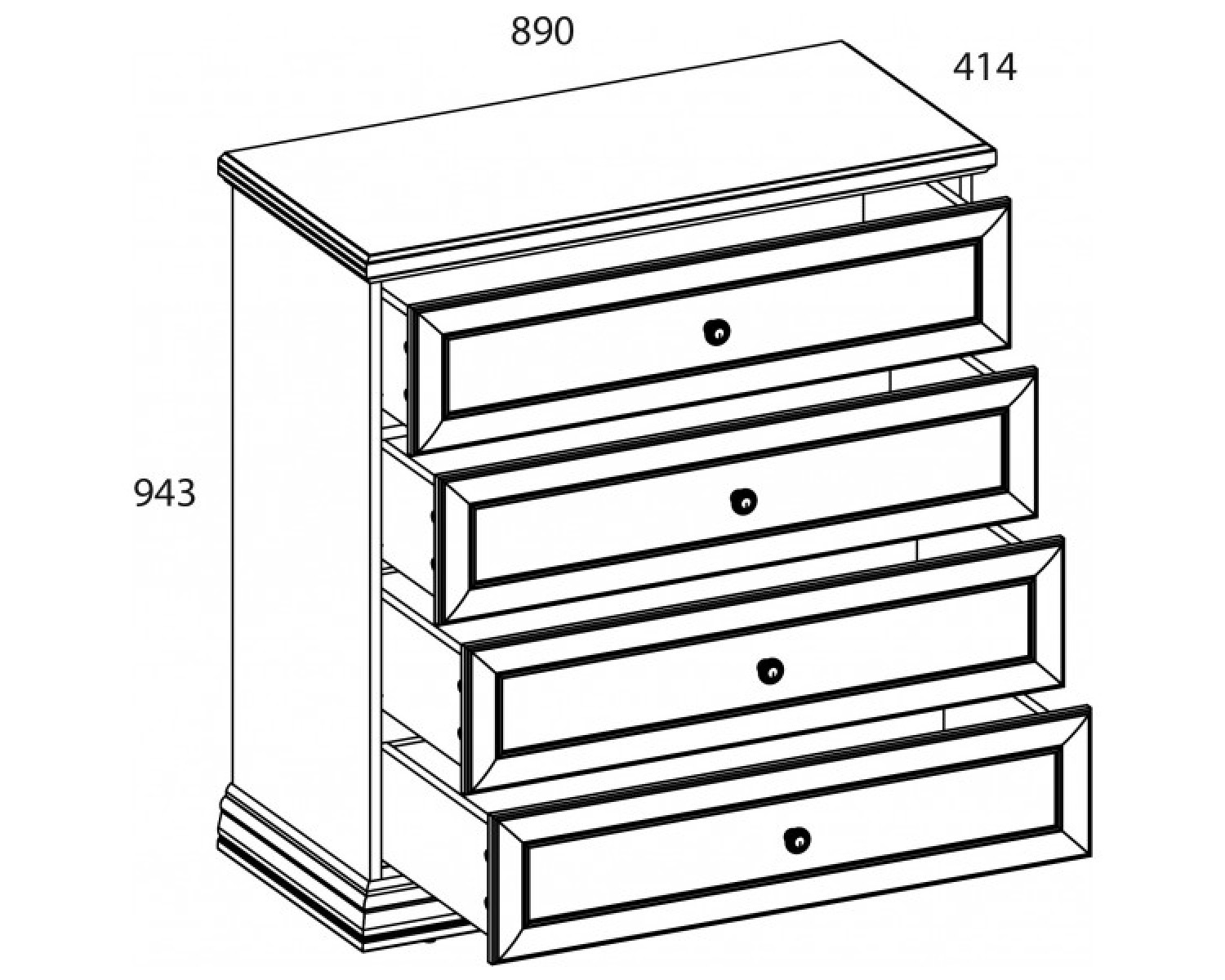 Комод 4S SEVILLA. Один из самых практичных предметов мебели, который поможет поддержать порядок в любой комнате. Такой элемент компактен и может разместить большое количество вещей, совмещает всю свою функциональность с декоративной задачей. Конструкция комода 4S прямая, представляет четыре выдвижных ящика, расположенных друг над другом. Особенностью модели является внешний вид, использование направляющих с доводчиками.
