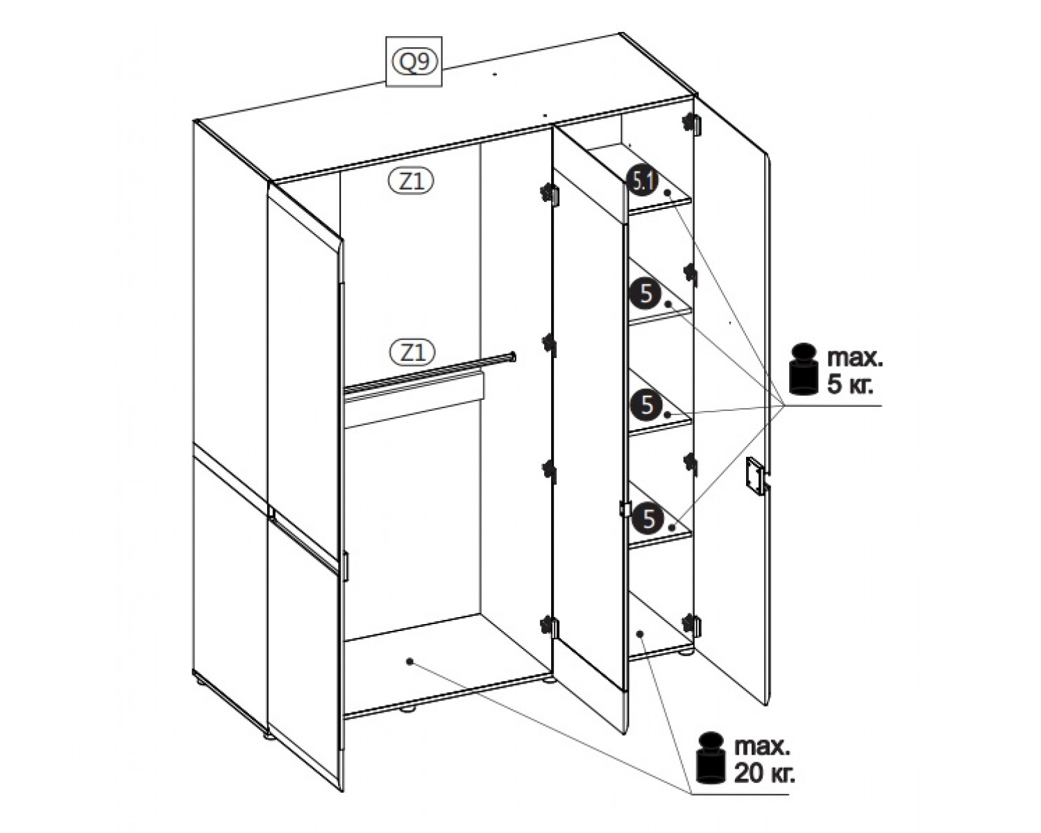 Габариты (ГхШхВ): 590x1640x2090
