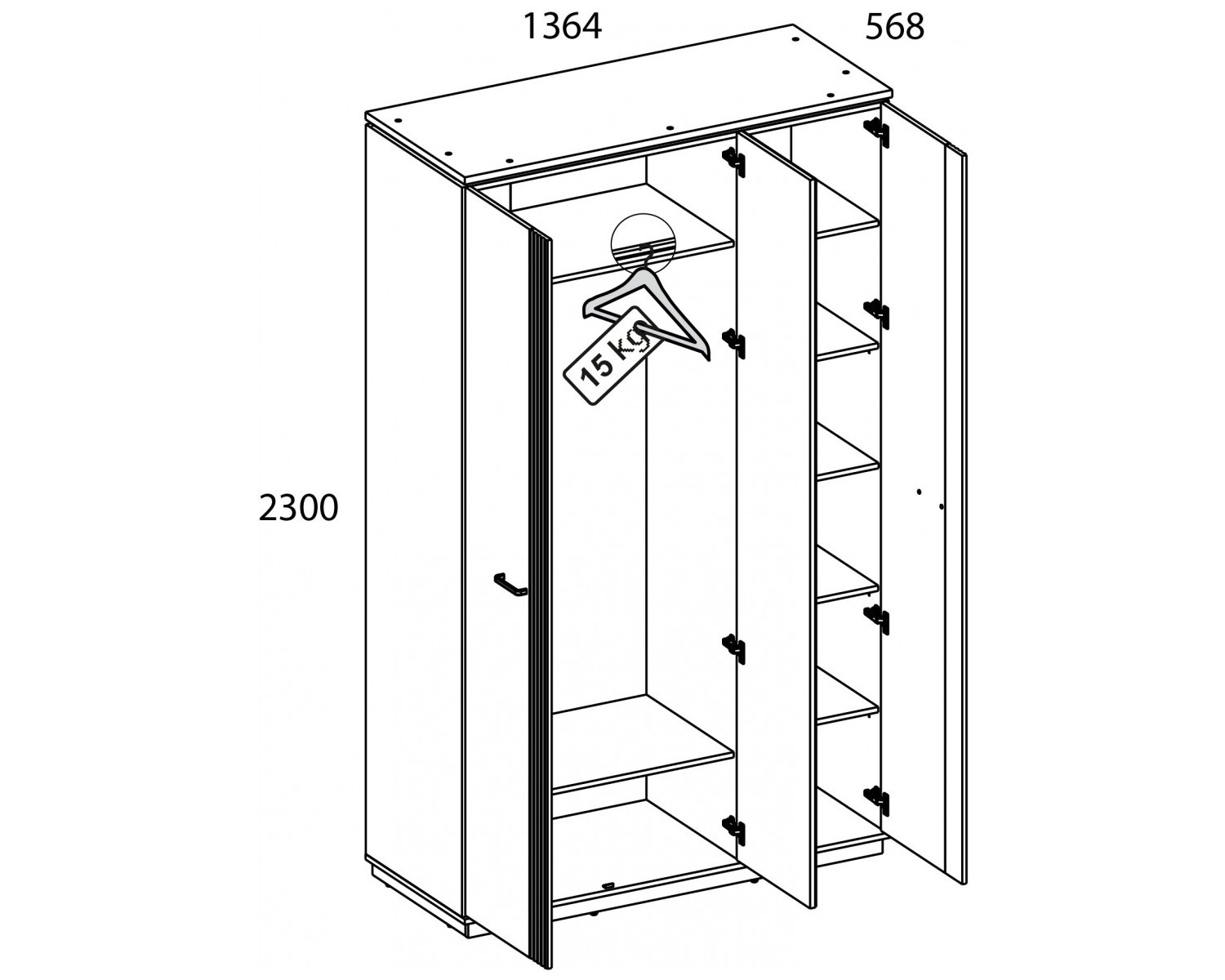 Габариты 1364х2300х568