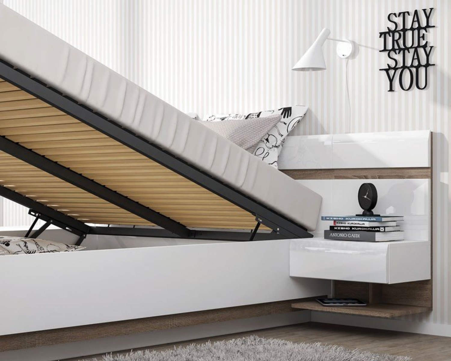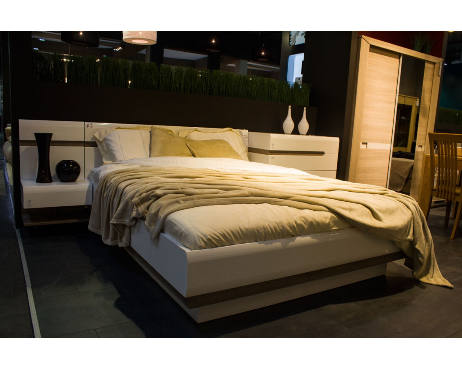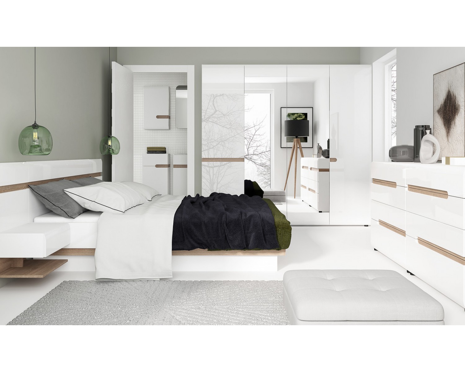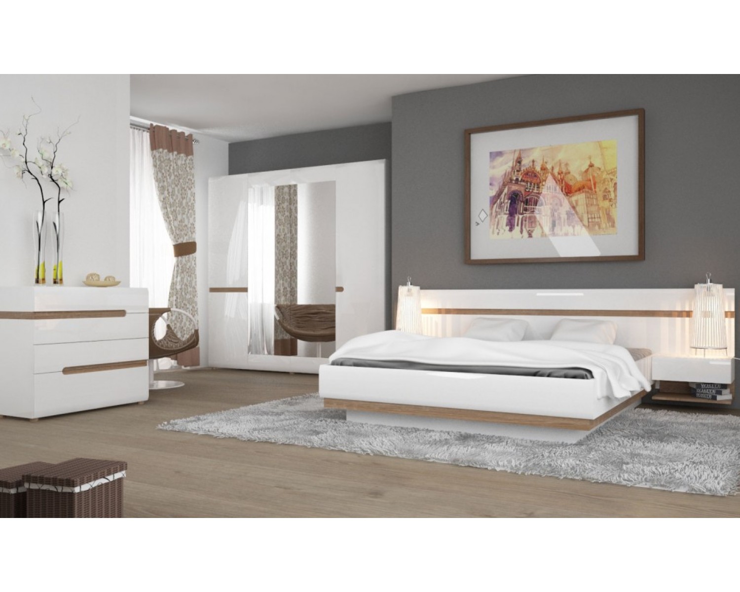 Спальный гарнитур Линате в современном стиле, отличается качественными экологичными материалами и минималистичным дизайном. Сочетание белого глянца с древесной текстурой. Нетрадиционный дизайн коллекции LINATE — это отличный вариант для тех, кто всегда следует новым веяниям моды. Белый глянцевый фасад, оригинальное исполнение ручек, в виде J-образных канавок, направляющие скрытого монтажа с доводчиками, а также необычный дизайн всей коллекции подчеркнет индивидуальность владельца, его стремление к оригинальности и новизне.