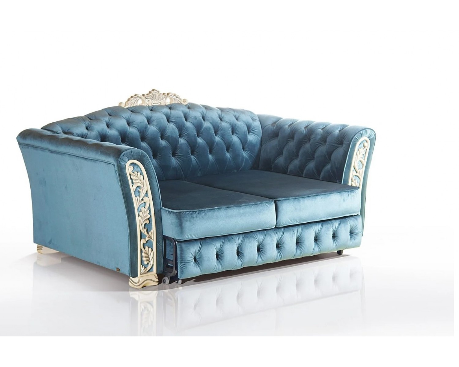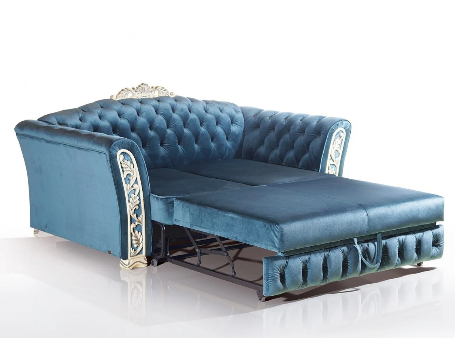 Ровное спальное место в разложенном виде размером 140*200 см. В основании сиденья используются пружины змейки и матрац из пенополиуретана марки HR 3535 толщиной 120 мм, что дает очень мягкую посадку. Для дополнительного усиления в основании подушек сиденья установлены металлические рамы. Резной декор выполнен вручную из натурального дерева (бук). В комплект (и цену) входят подушки. Диван поставляется полностью в разобранном виде.
