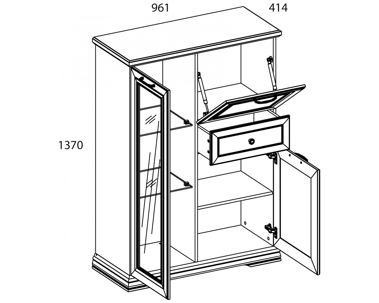 SEVILLA, Шкаф с витриной 1V2D1S. Цвет БЕЛЫЙ 960х1370х414 - 1шт