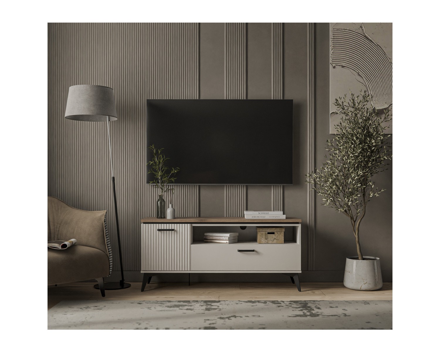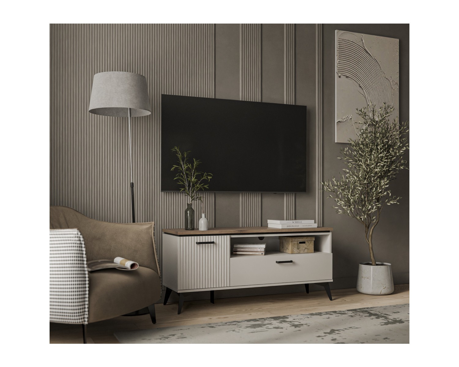 VINATI, Тумба RTV 1D1SN. Цвет ПЕРСИДСКИЙ ЖЕМЧУГ/ АМАРОК