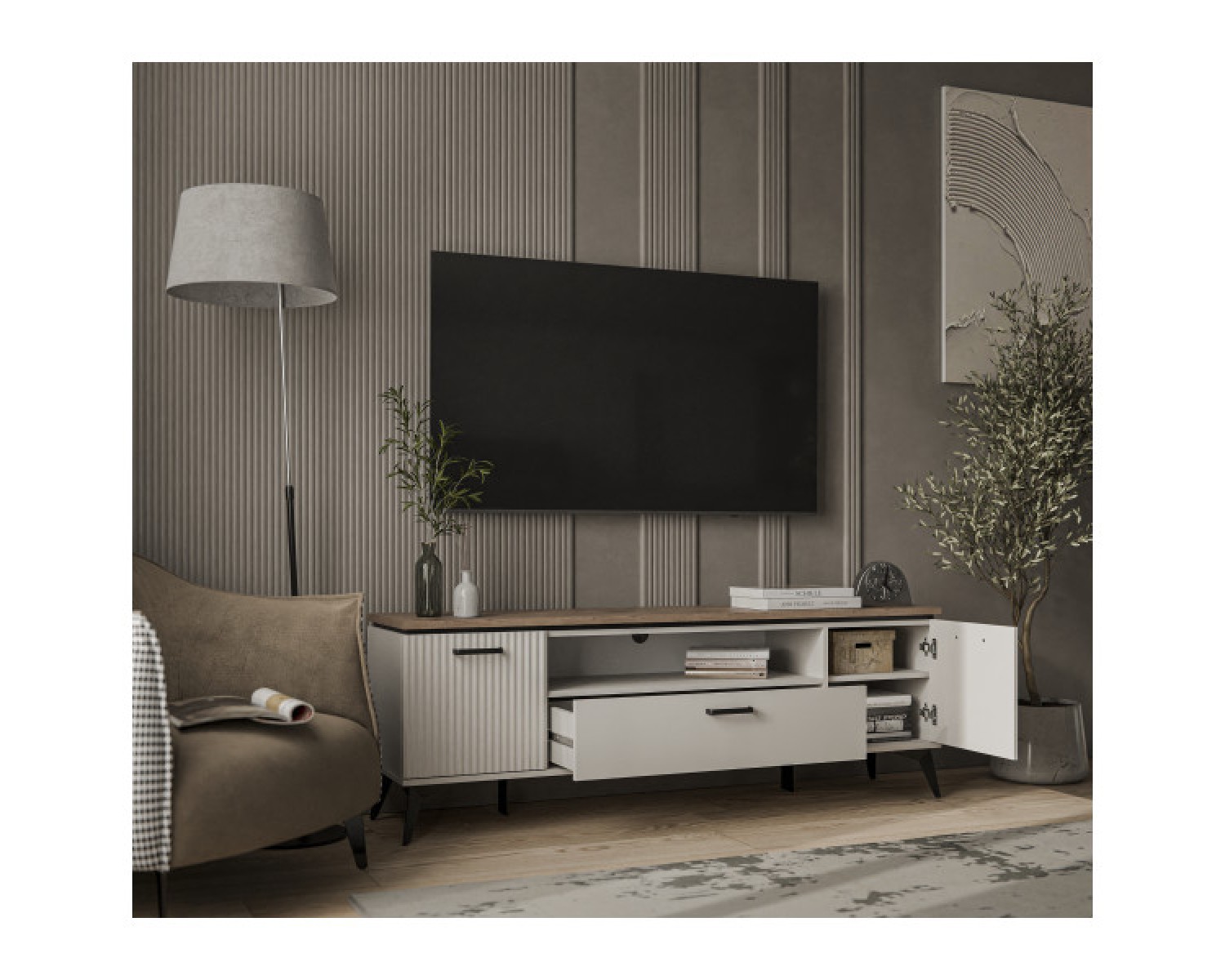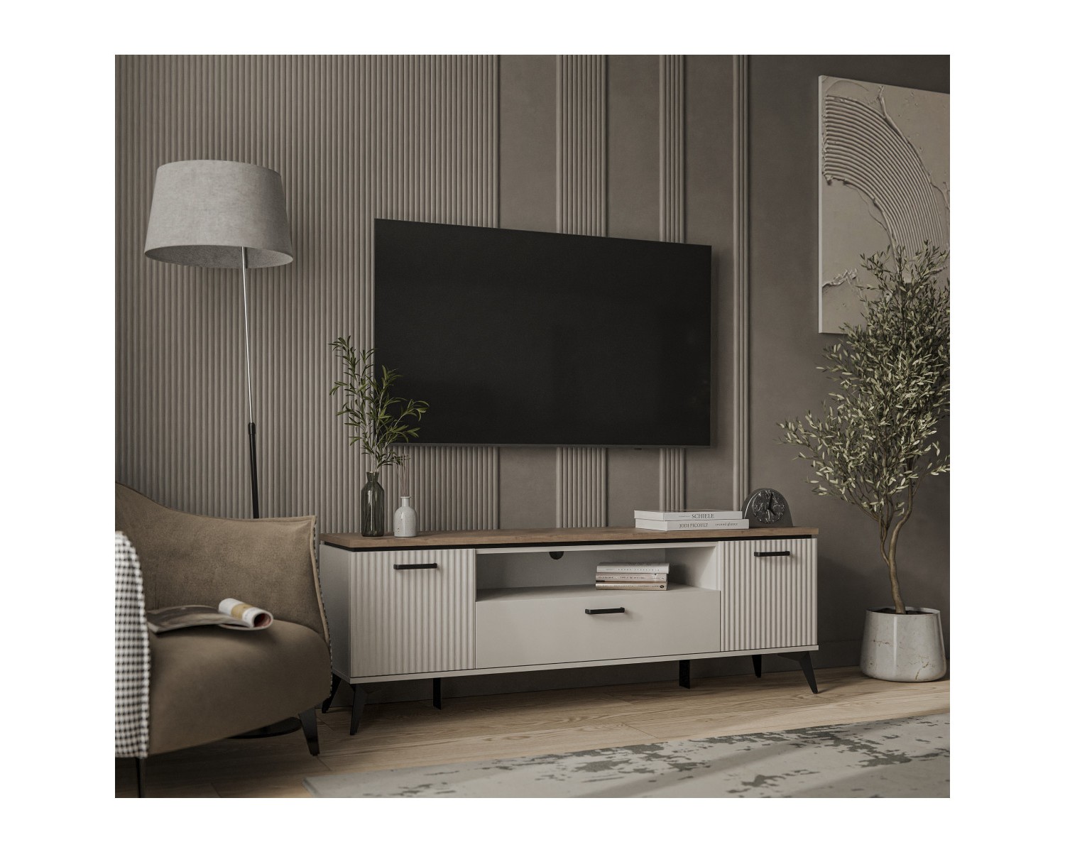VINATI, Тумба RTV 2D1SN. Цвет ПЕРСИДСКИЙ ЖЕМЧУГ/ АМАРОК