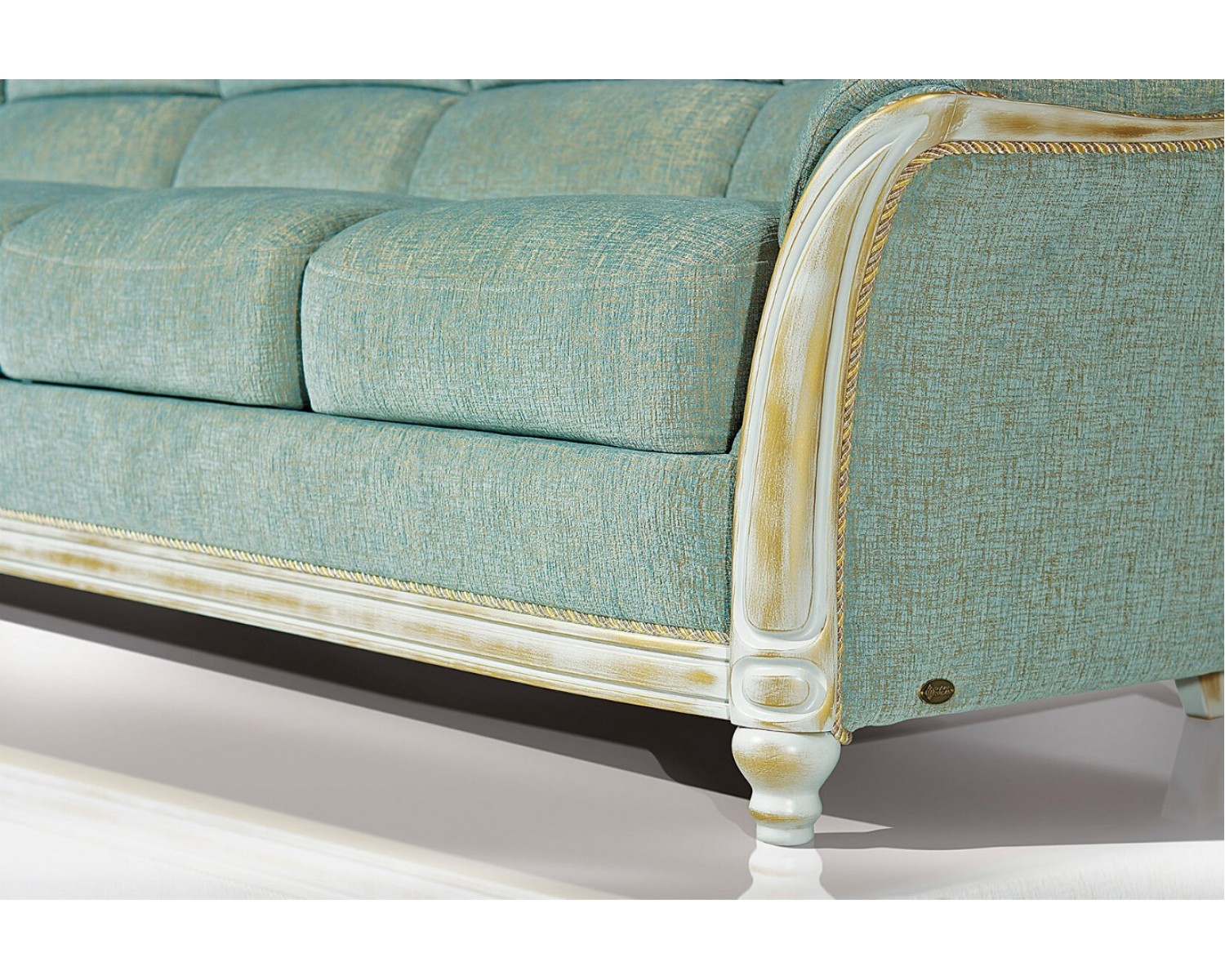 Красивый резной каркас ручной работы из кавказского бука, который обладает неповторимым цветом и особенным рисунком дерева. Передняя планка (царга) дивана и кресел выполнена с спецэффектом «мрамор»
