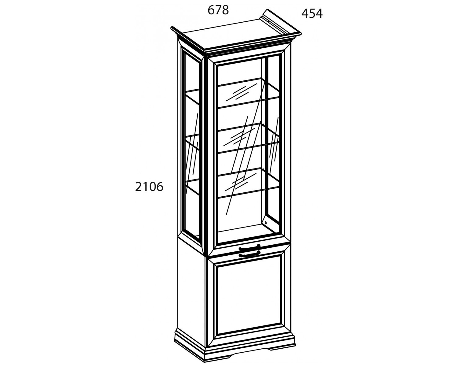 Шкаф с витриной 1V1D SEVILLA – направлен на организацию роскошной и воздушной гостиной в классическом стиле. Конструкция шкафа с витриной 1VD прямая, представляет собой одно отделение с полками из стекла за одной витриной (1V), одно отделение с полкой за одно глухой дверью (1D). Витрина и дверь распашные, крепятся на петли к боковому корпусу. Особенностью элемента являются боковые корпуса из стекла и рамки.