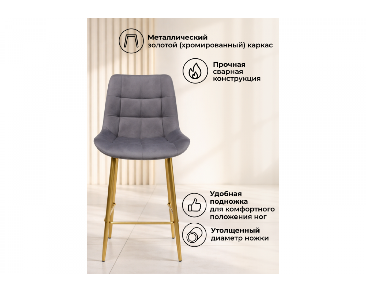 Полубарный стул Челси темно-серый (zd 995) / золотой идеально впишется в любой интерьер, украшая повседневную жизнь. Уникальный дизайн и трендовый цвет создаст ощущение уюта и тепла в любом помещении.