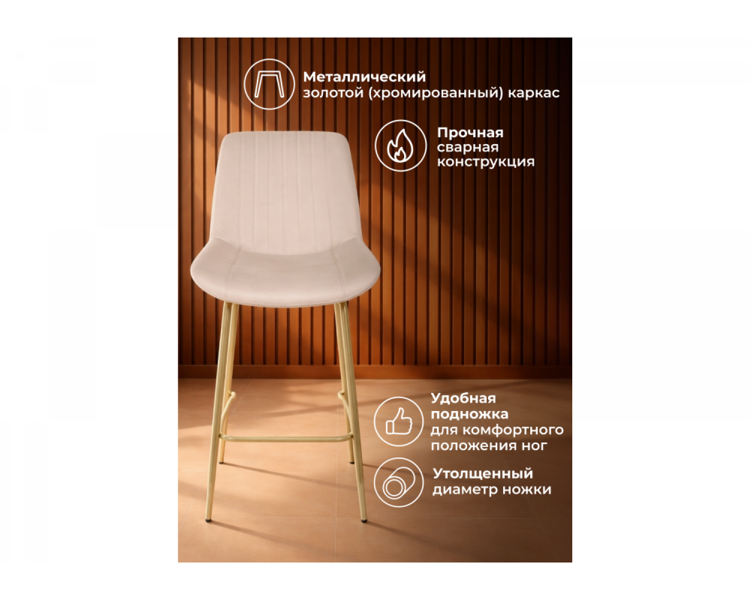 Полубарный стул Седа бежевый (zd 210) / золотой идеально впишется в любой интерьер, украшая повседневную жизнь. Уникальный дизайн и трендовый цвет создаст ощущение уюта и тепла в любом помещении.