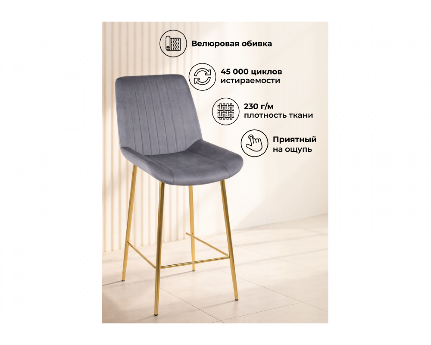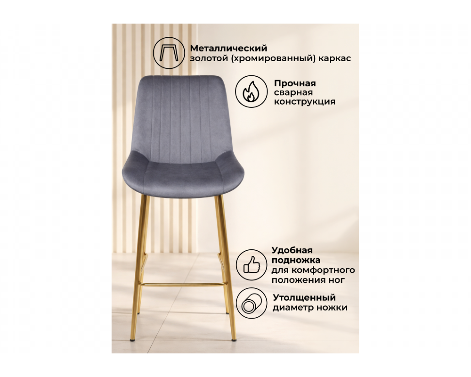 Полубарный стул Седа темно-серый (zd 995) / золотой идеально впишется в любой интерьер, украшая повседневную жизнь. Уникальный дизайн и трендовый цвет создаст ощущение уюта и тепла в любом помещении.