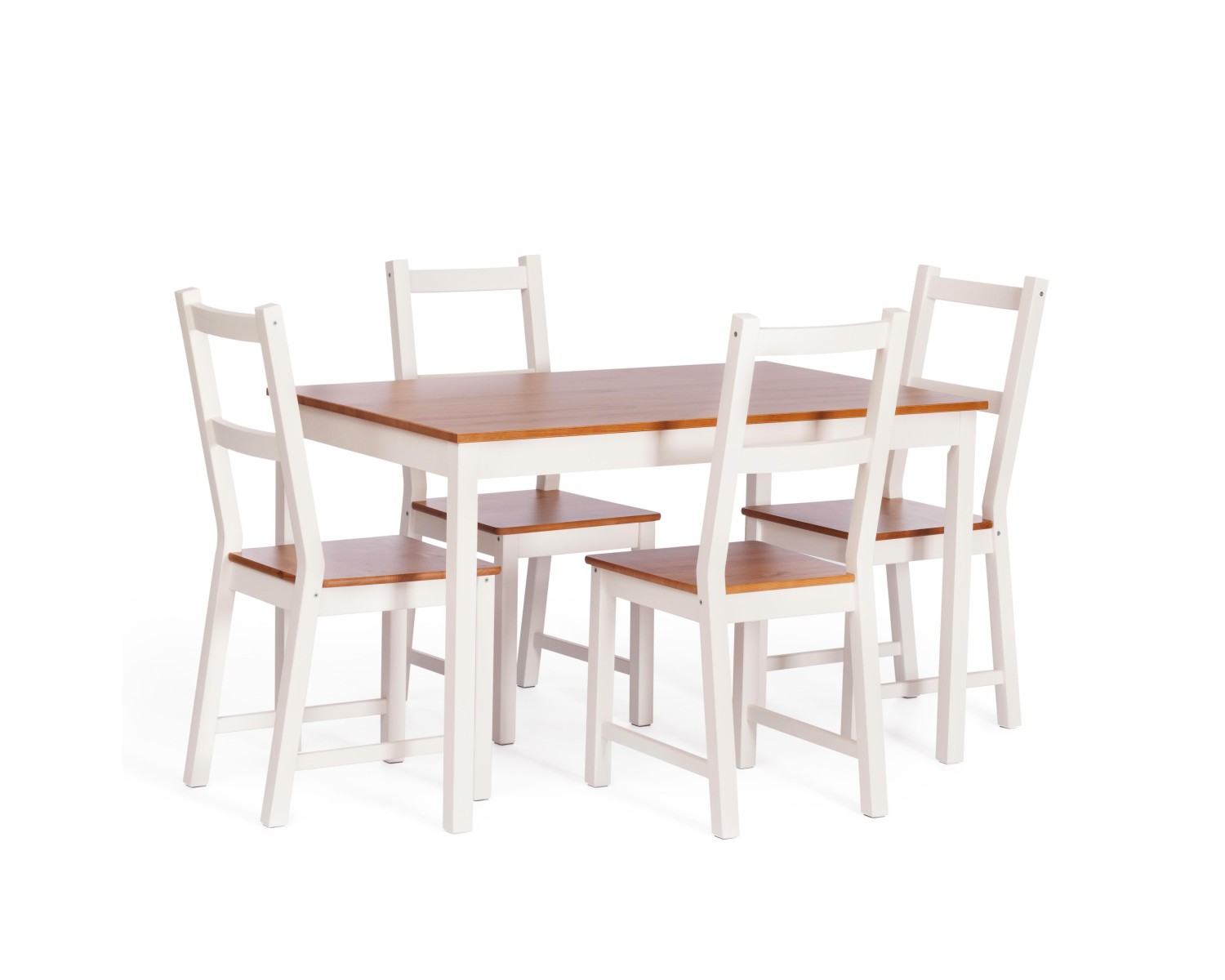 Комплект обеденный Соната/Sonata (стол+4стула) массив сосны, стол:120х75х75см стул:41х50х95см, антик/белый