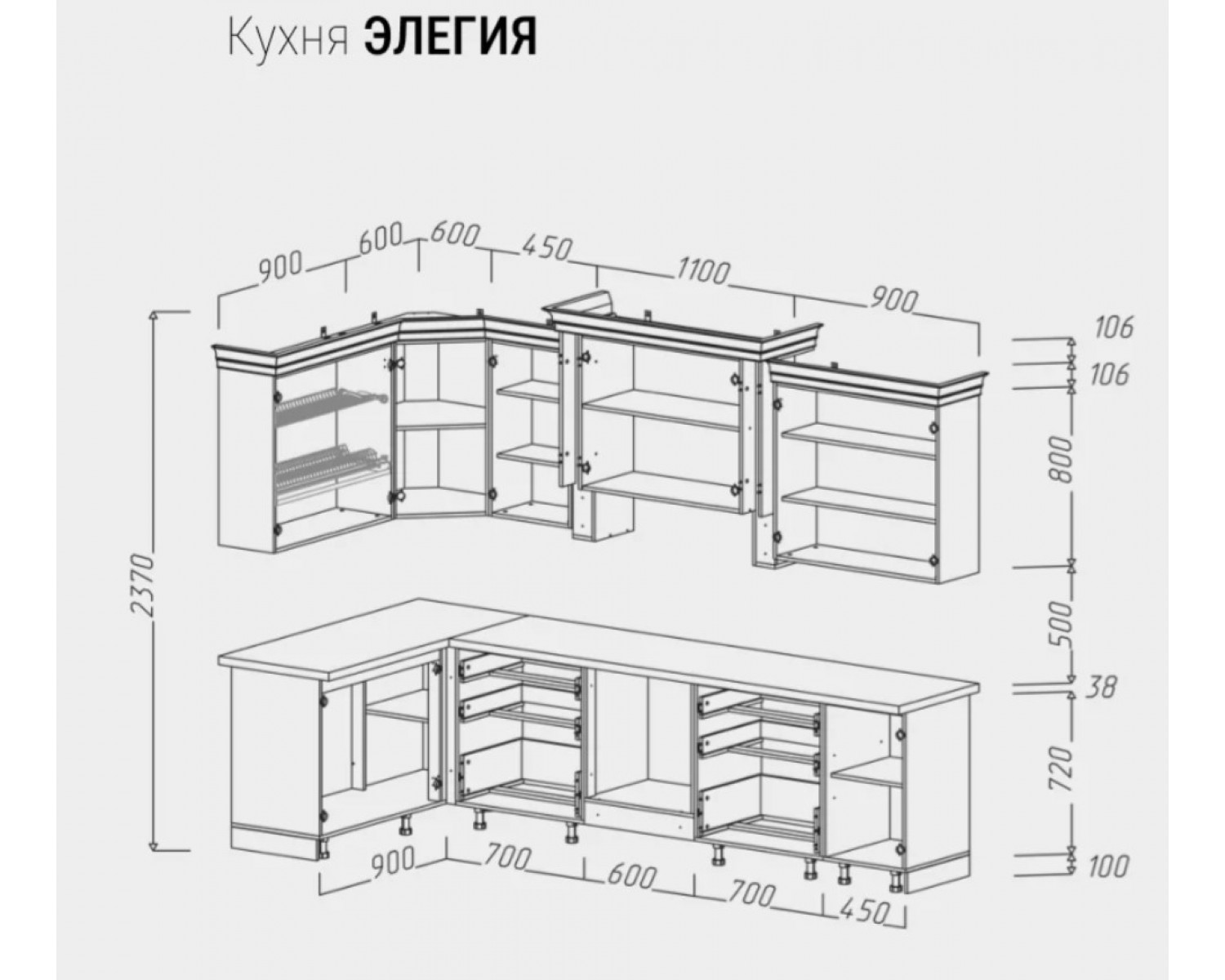 Высота готовой кухни: 2370 мм