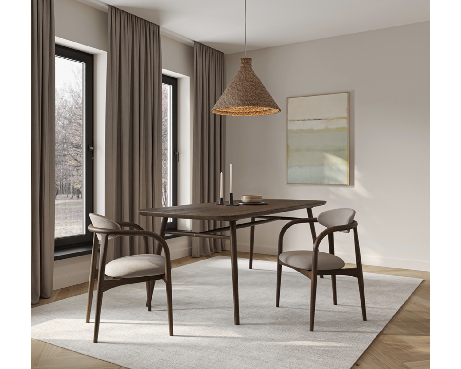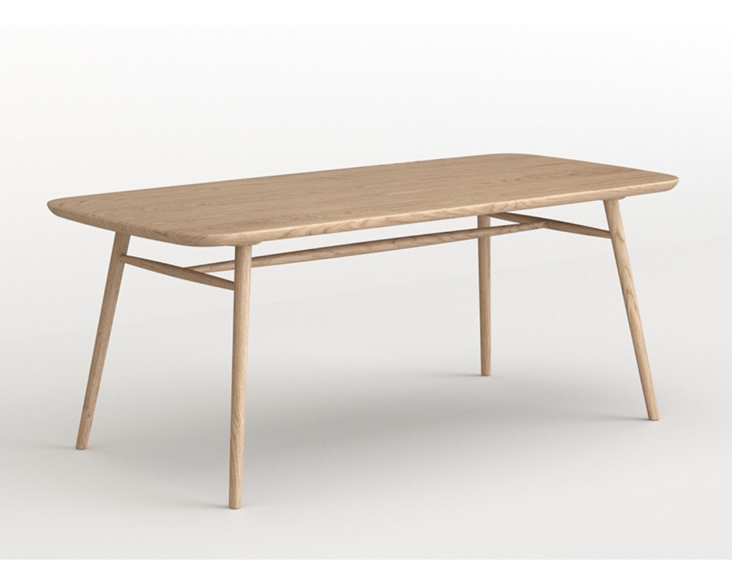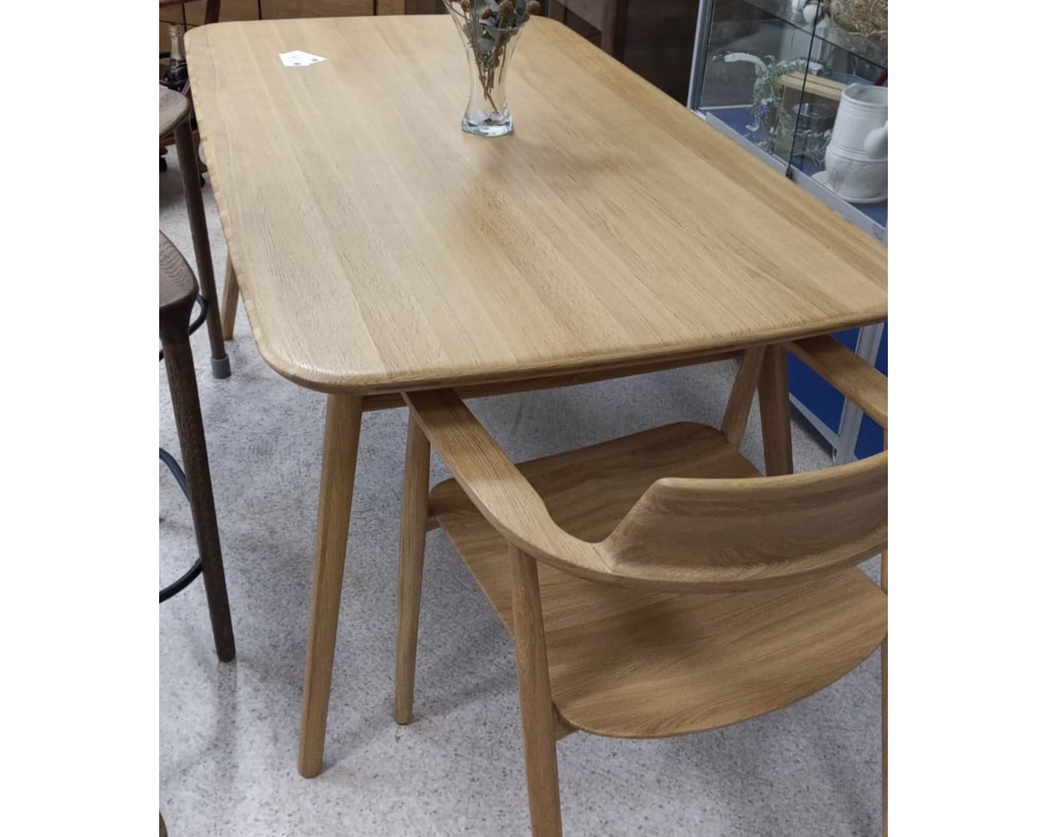 Обеденный стол из массива дуба со скругленными углами на 1,4 метра длиной.