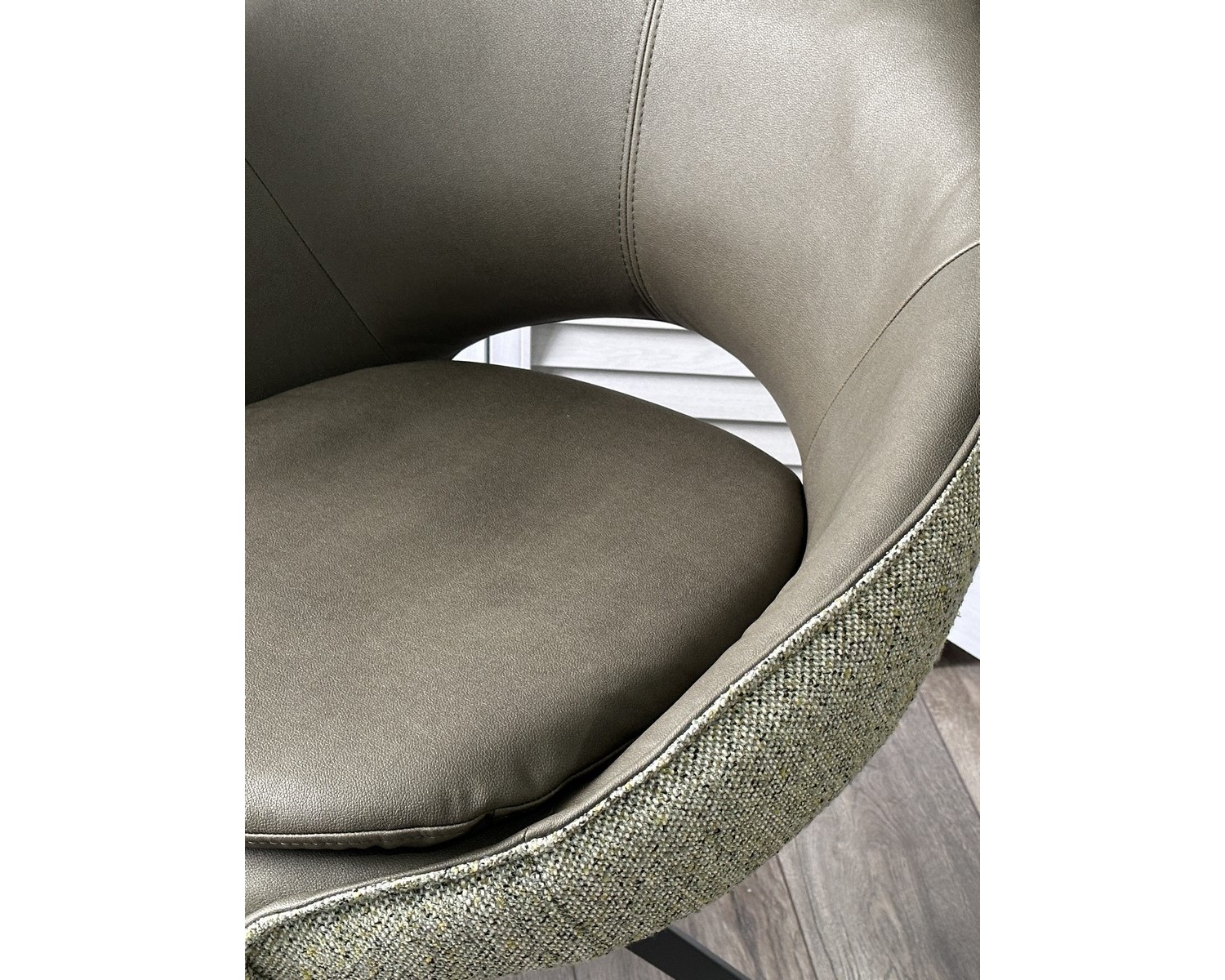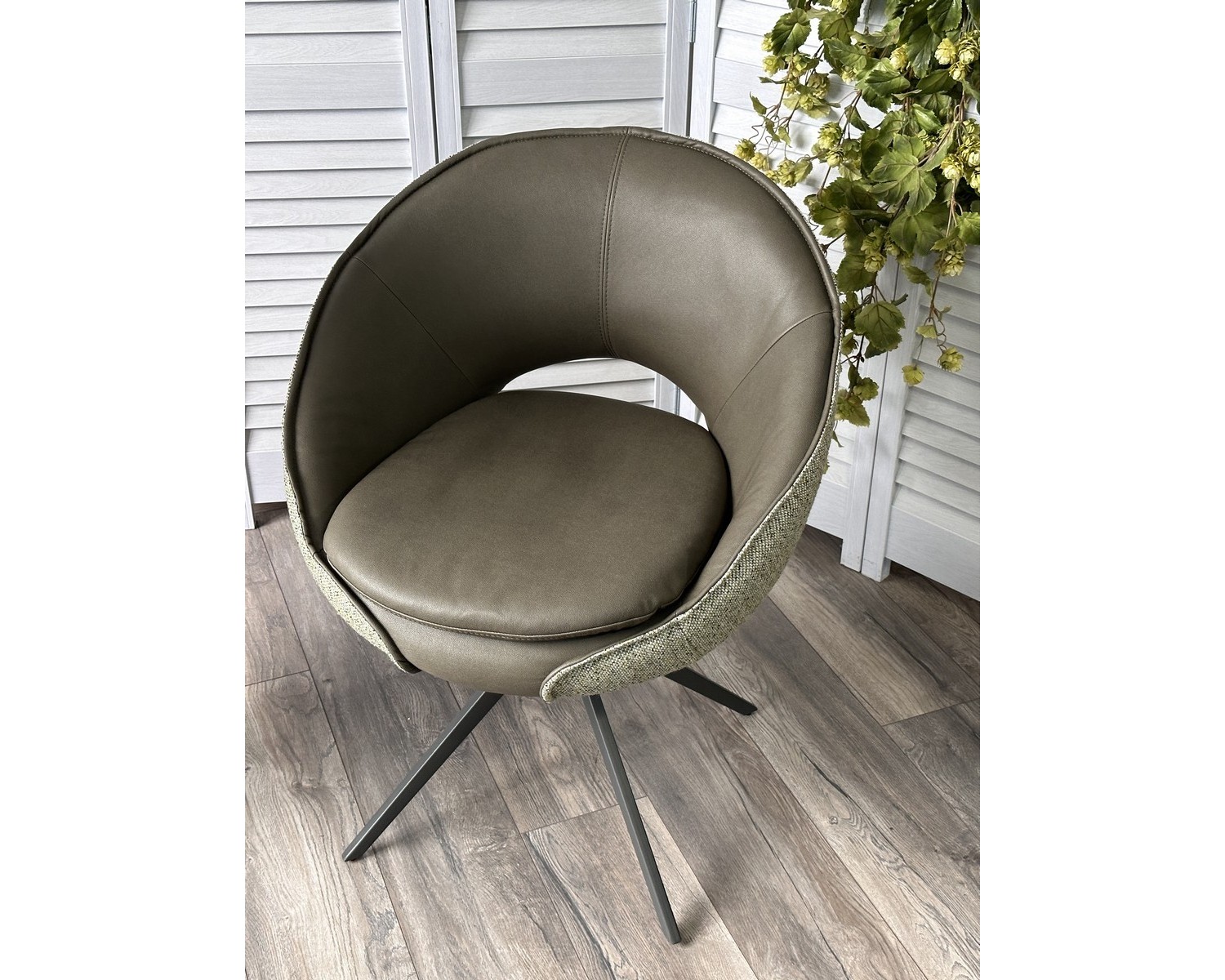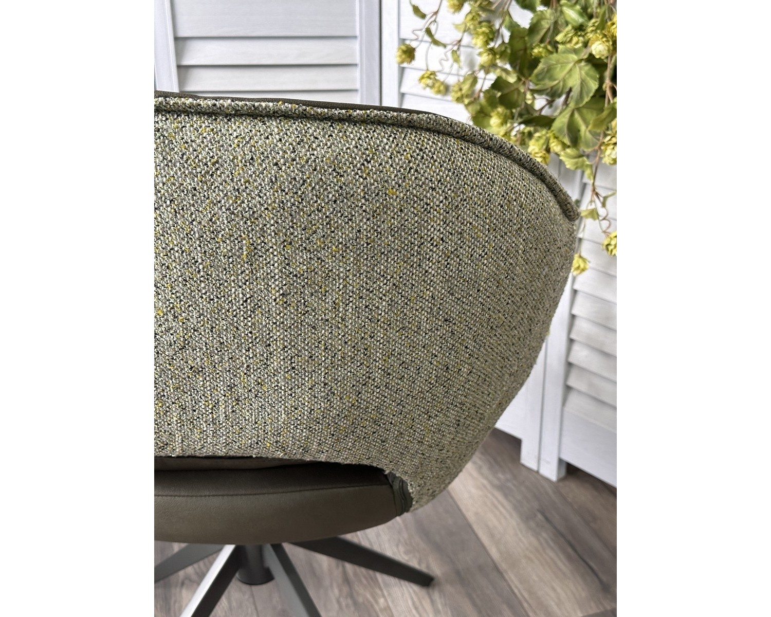 Обивка - экокожа спереди и букле сзади зеленого цвета.