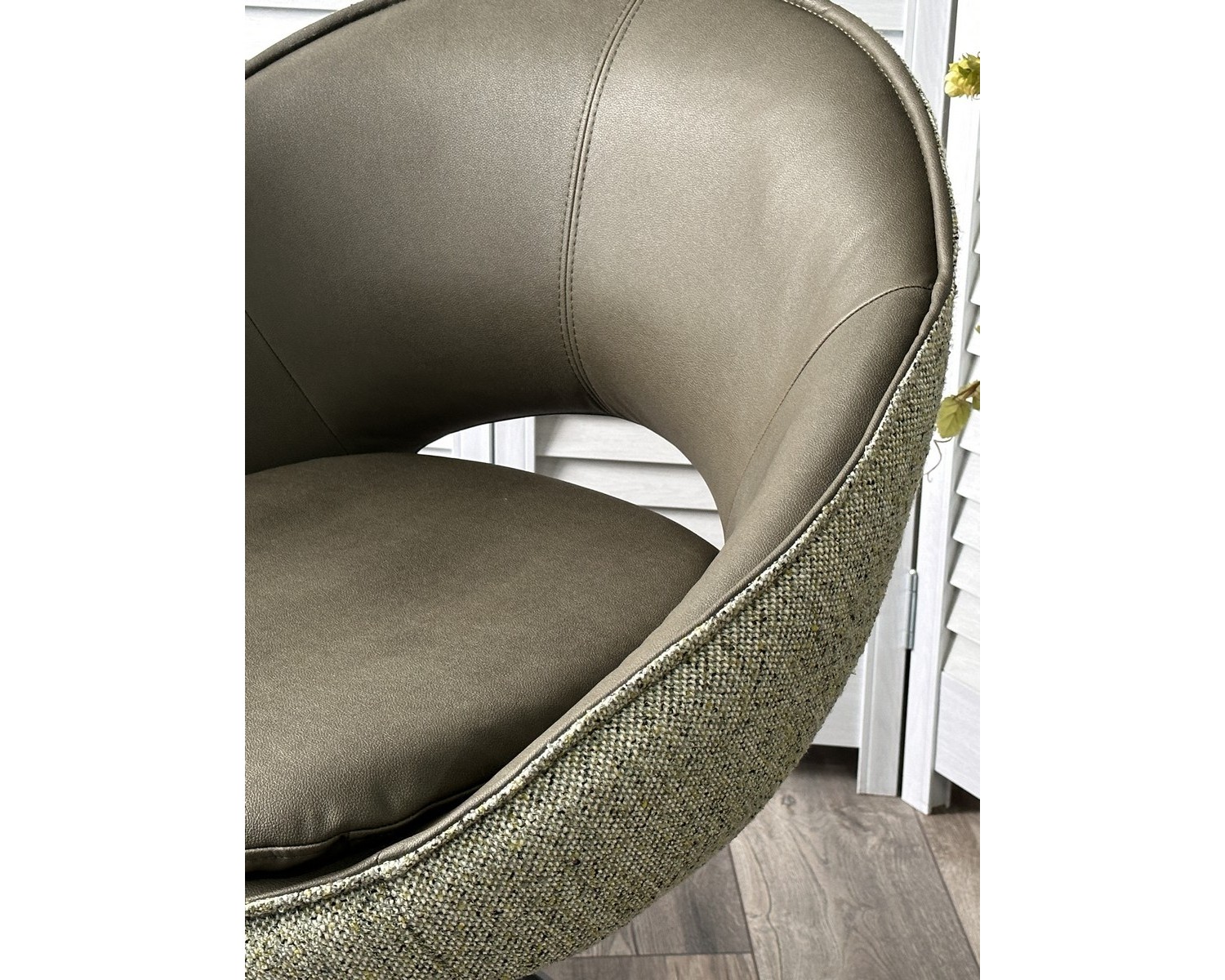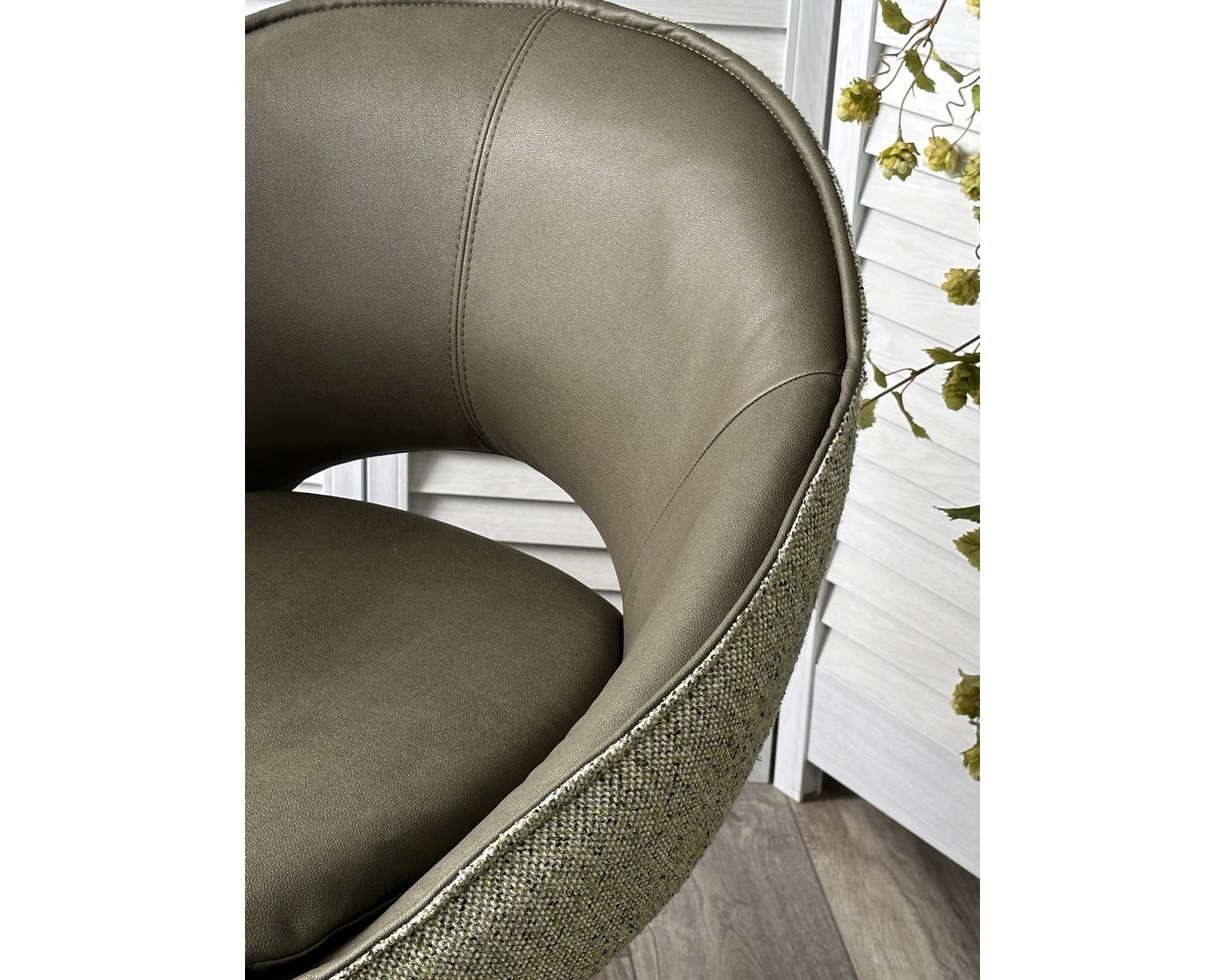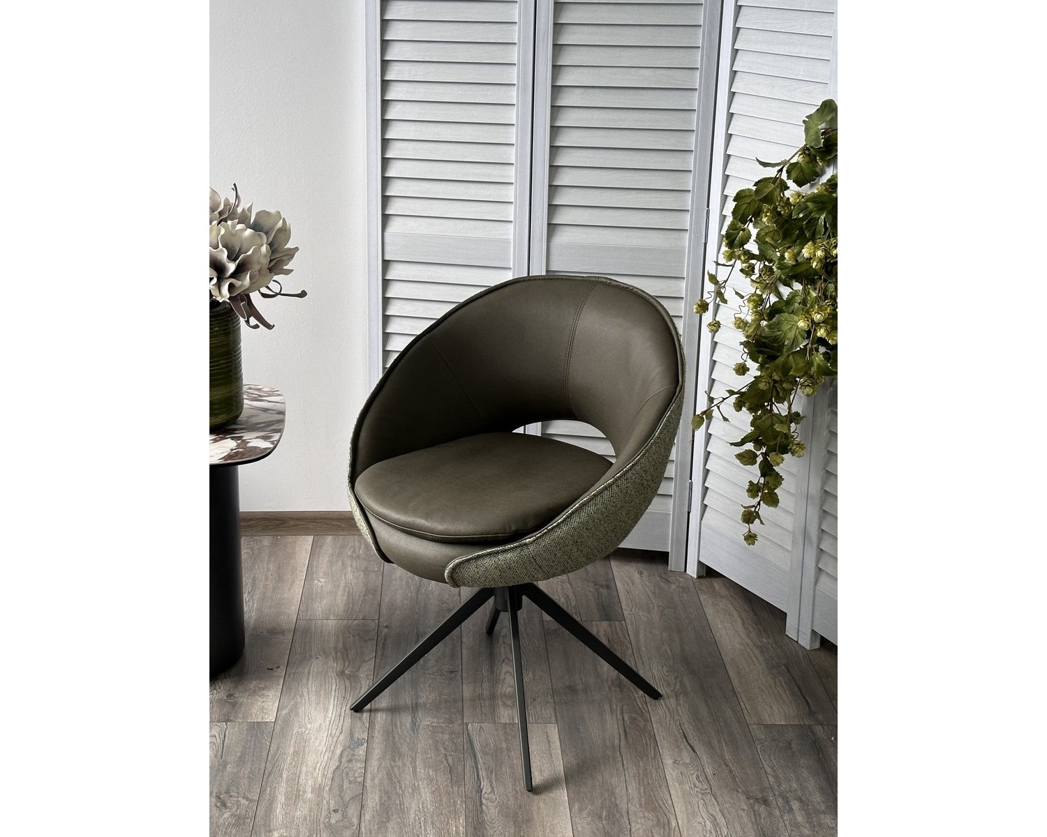 Обивка - экокожа спереди и букле сзади зеленого цвета.