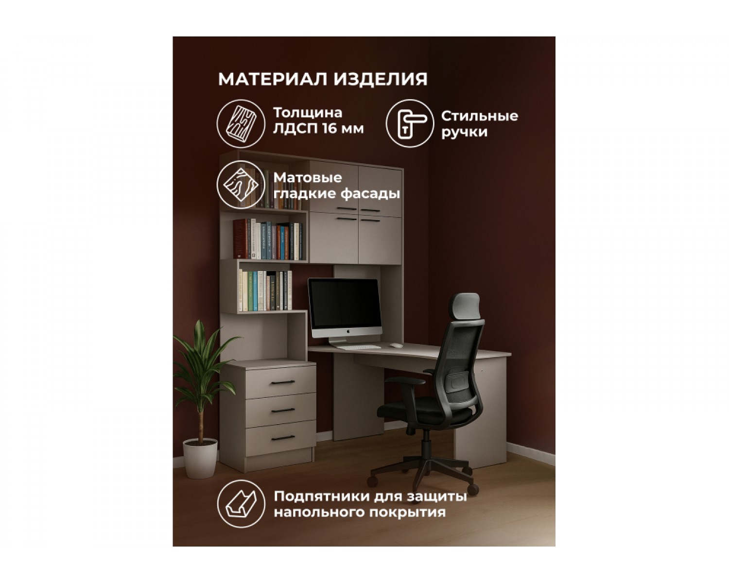 Компьютерный стол Эльброни правый кашемир идеально впишется в любой интерьер, украшая повседневную жизнь. Уникальный дизайн и трендовый цвет создаст ощущение уюта и тепла в любом помещении.