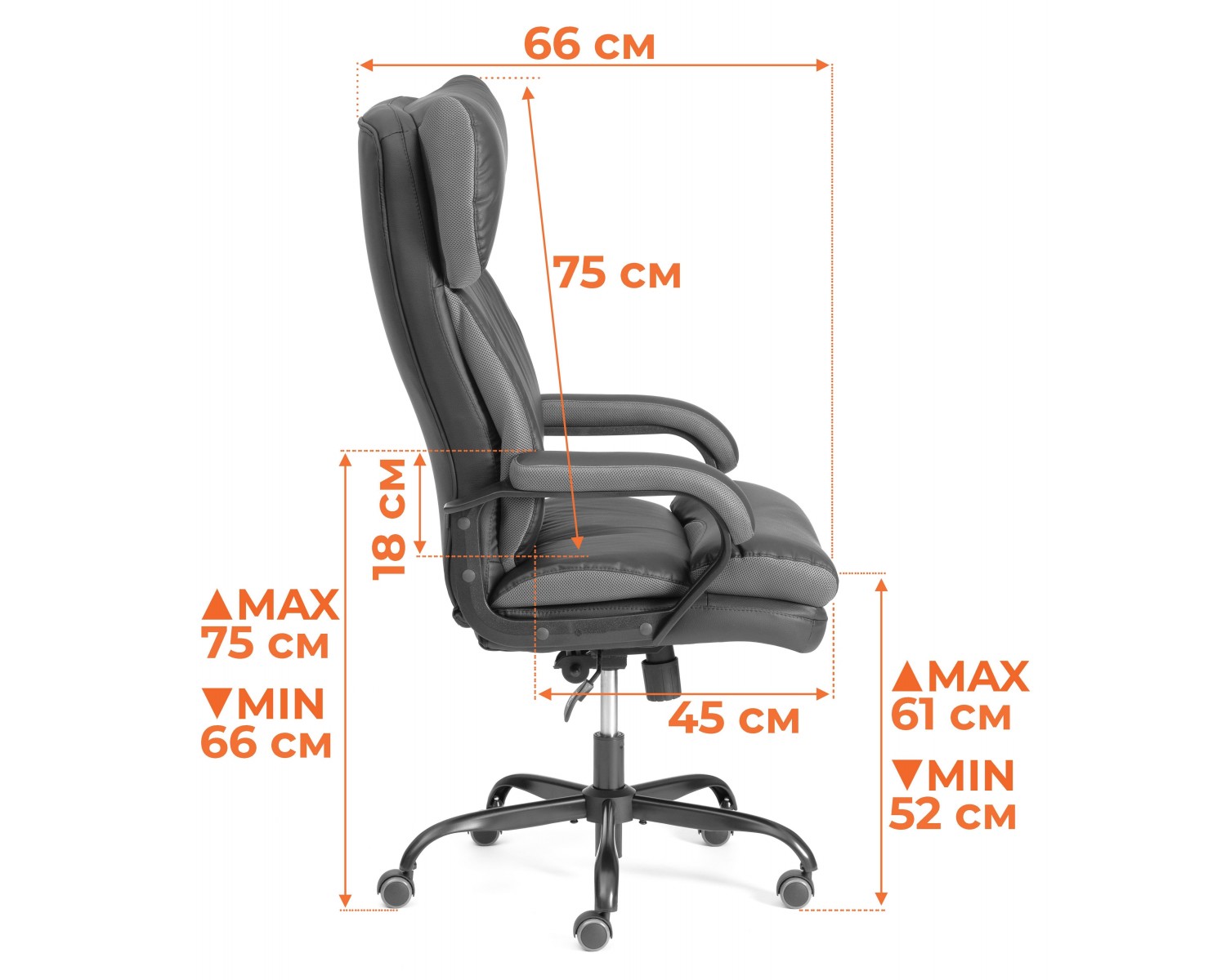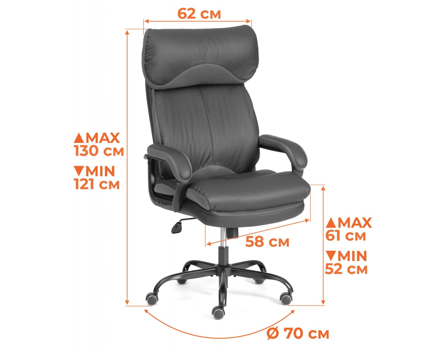Эргономичная спинка, прочный каркас, мягкое сиденье компьютерного кресла Duke metalBL/Дюк МеталБл - воплощение элегантности, практичности и солидности. Модель отлично впишется в дизайн рабочего кабинета как офиса, так и дома. Каркас из экологически безопасной фанеры толщиной до 15 мм гипоаллергенен и надежен. Широкое сиденье с мягким наполнителем из пенополиуретана стандартной плотности (до 35 кг/м2) с независимыми пружинными блоками подстраивается под контуры тела человека, обладает отличными эксплуатационными качествами. Регулировка высоты и наклона с фиксацией в любом положении до 15 градусов помогут принять комфортную позу для продолжительной работы. Cтальная крестовина покрытая черной порошковой краской (разборная), толщина стенки трубы 1,1 мм Соответствует стандарту Bifma/Бифма. Диаметр крестовины 700 мм. Крестовина обладает долгим сроком службы, не требует сложного ухода, не теряет своего первоначального внешнего вида на протяжении длительного времени. Полиуретановые ролики с прорезиненными вставками бесшумны, не повреждают напольное покрытие. Ролики и крестовина в креслах бренда Tetchair/Тетчэйр соответствуют стандарту Bifma/Бифма. Во всех креслах бренда Tetchair/Тетчэйр используются газлифты 3 класса, он способен выдерживать вес до 120 кг. Мягкий подголовник, удобные фиксированные подлокотники с накладками снимут напряжение с шеи и плеч. Офисное кресло, обитое прочной обивкой, выдерживает до 50 000 циклов на истирание по Мартиндейлу. Уникальная модель Duke/Дюк подчеркнёт безупречный вкус владельца и придаст интерьеру презентабельный вид. Максимальная нагрузка 120 кг. Компьютерное кресло поставляется в разобранном виде. Требуется простая сборка по прилагаемой инструкции.
